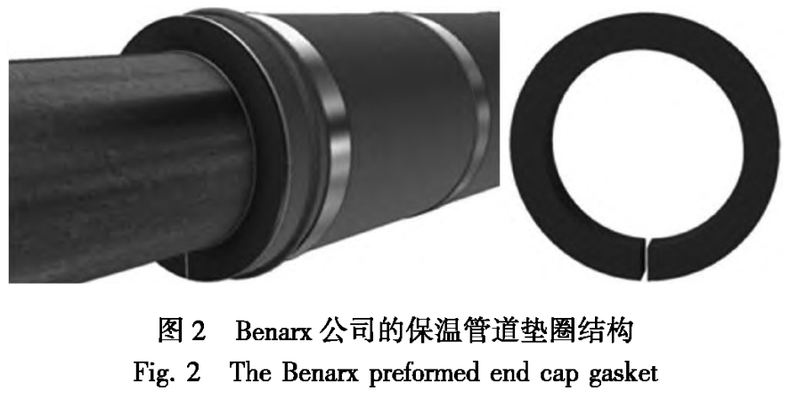 层、镀锌铁皮保护层、不锈钢薄板保护层等。设计中应该注意外防护层接口处的密封问题(如玻璃胶封口的结构比老式的硅酸铝毯防水效果更好)以及外防护层在一些特殊部位的结构设计。比如槽型保温支架、设备支撑管托支架、阀门、弯头、支管、泵、仪表伴热管线等,这些特殊结构处使得保温结构不连续,为水分、水气的渗透提供了路径,另外这些结构处也容易造成水气、水分的聚积⑻。另外,保温结构内部的防腐涂层也是防止CUI发生的有效途径,防腐涂层能够有效地阻止进入保温结构的水分、电解质与金属表面接触,减缓腐蚀的发生。为了有效地防止CUI的发生,挪威的Be-narx公司设计了一种用于保温管道的垫圈结构(Benarx Preformed End Cap Gasket),如图2所示,这种非金属的垫圈结构是保温管道防水的关键环节,垫圈可以阻止水分的侵入和在保温结构中的迁移,可以根据管道测尺寸和保温层的尺寸进行定制,易于安装和更换,不会割你损坏伴热电缆,不会破坏保温层下防腐涂层系统。
